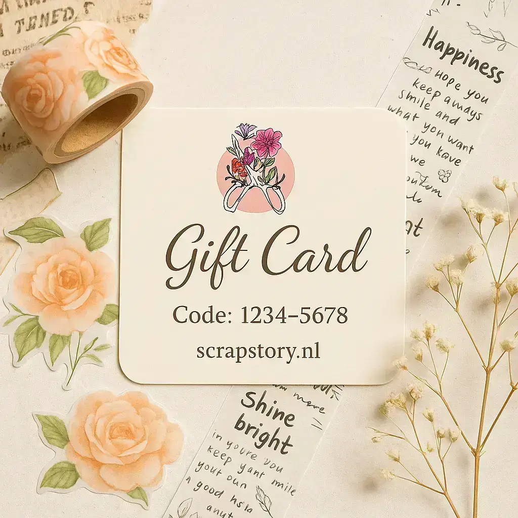 Op zoek naar het perfecte cadeau voor een echte knutsel- en scrapliefhebber? Met een cadeaubon van Scrap Story by Ellen zit je altijd goed! Onze cadeaubonnen zijn ideaal voor iedereen die dol is op papier, stickers, tape en unieke scrap-accessoires. Zo kan de ontvanger zelf zijn of haar favoriete items uitkiezen en beginnen aan een nieuw creatief project vol inspiratie. ๐โ๏ธ
