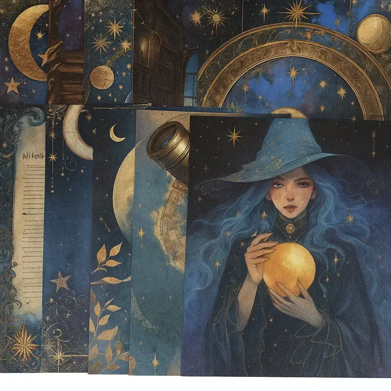 Mini decoratief papier – 20 stuks – Maan & Mystiek thema – 4 varianten