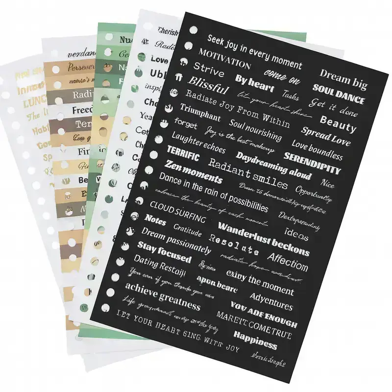 Dankzij de handige perforatie zijn de vellen geschikt voor ringmappen, waardoor je ze eenvoudig kunt bewaren of meenemen. Ideaal voor scrapbooken, journaling, snailmail, wenskaarten of het opvrolijken van je agenda. Of je nu een quote nodig hebt voor een creatieve boost of een kleine bemoediging in je dag, deze set geeft je eindeloos veel mogelijkheden.