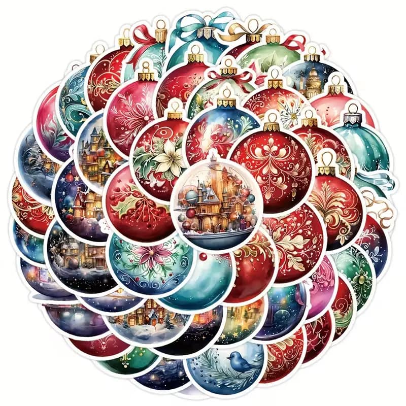 Versier je kerstprojecten met een vleugje glans en magie met deze Kerstballen stickers. De stickers zijn gedetailleerd afgewerkt met feestelijke kleuren zoals rood, groen, goud en blauw, en bevatten schitterende patronen en illustraties van klassieke kerstballen.