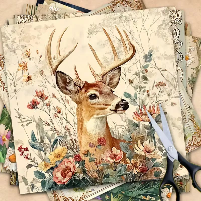Breng de schoonheid van de natuur tot leven in jouw creatieve projecten met deze Scrap Set Bosdieren. Elk vel van 15×15 cm is voorzien van schitterende, gedetailleerde illustraties van bosdieren zoals een trotse wolf, een nieuwsgierige vos, een elegant hert en kleurrijke vlinders. De zachte kleuren en natuurthema’s maken deze set perfect voor romantische, sprookjesachtige of rustieke creaties.