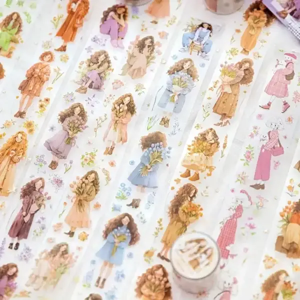 Laat je creativiteit bloeien met deze prachtige PET tape rollen, elk voorzien van unieke illustraties van vrouwen in combinatie met florale details. De tapes zijn transparant, waterproof en knipbaar met de hand. Perfect voor scrapbooking, journaling, collages of mixed media projecten.