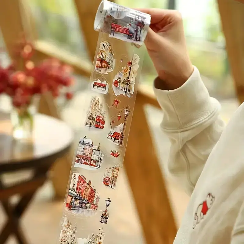 Ontdek de charme van historische straatjes en sfeervolle dorpen met deze PET tape rollen in vintage stijl. Elke rol toont gedetailleerde illustraties van pittoreske huisjes, sfeervolle straten en nostalgische lantaarns, perfect om jouw creatieve werk een unieke uitstraling te geven.