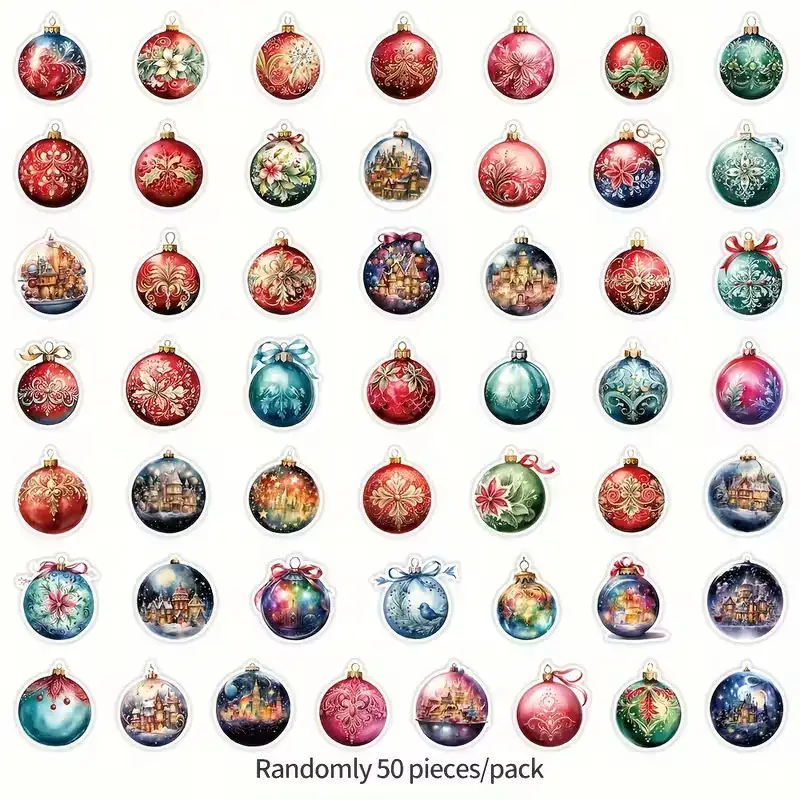 2 kerstbal stickers met glanzende en kleurrijke prints