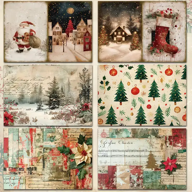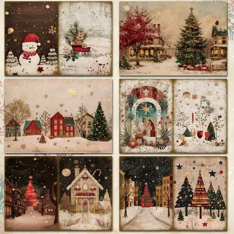 4 decoratieve papieren (21×15 cm) met sfeervolle kerstontwerpen