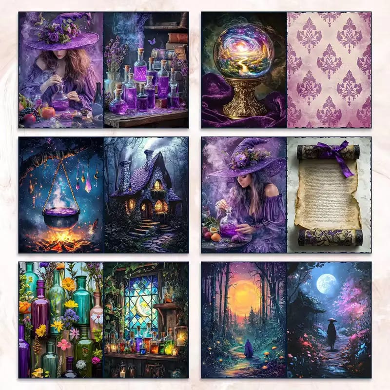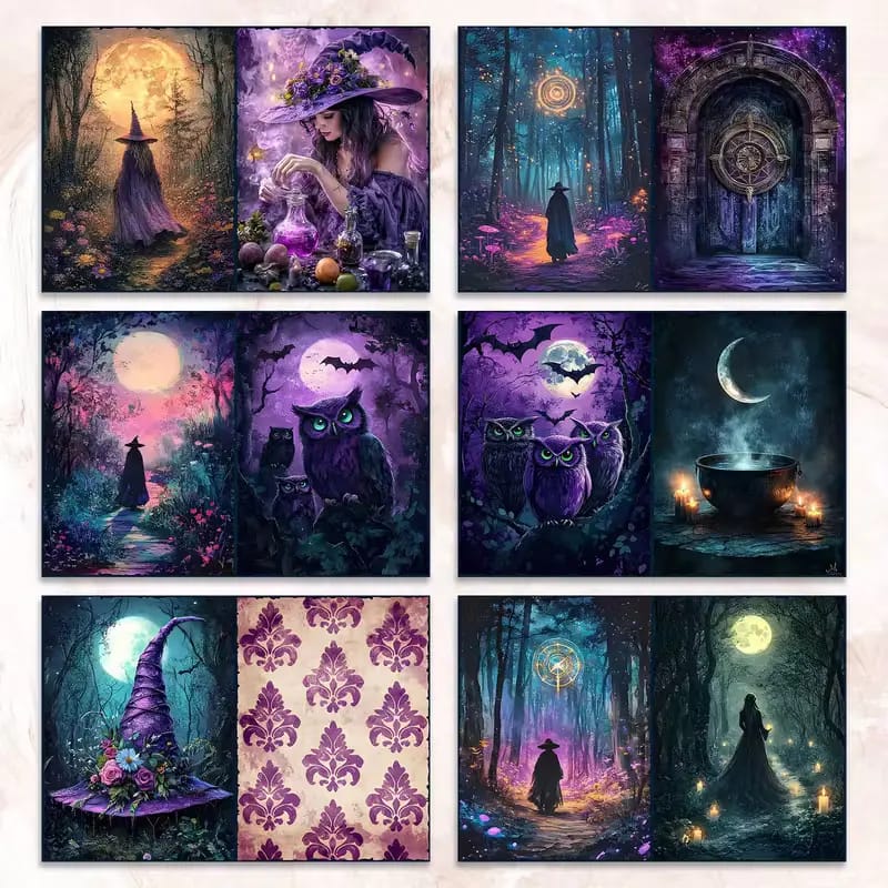 Breng een vleugje magie in je creatieve projecten met deze Scrap Set Magische Heksen. De set combineert sfeervolle papieren met prachtige illustraties van heksen, uilen, magische bossen, ketels en toverdrankjes, aangevuld met 4 transparante stickers die perfect passen bij het thema.