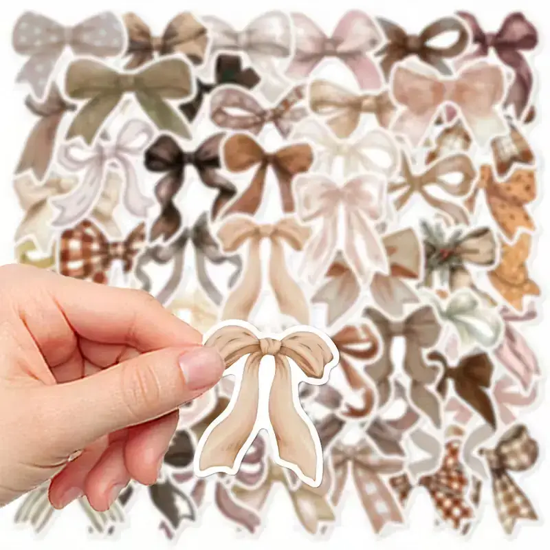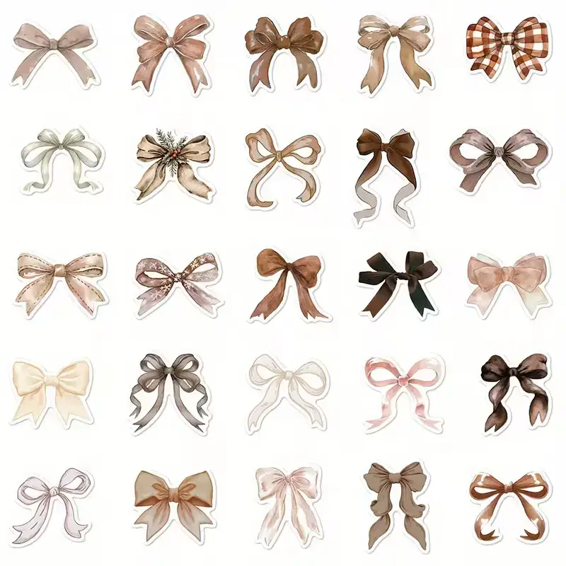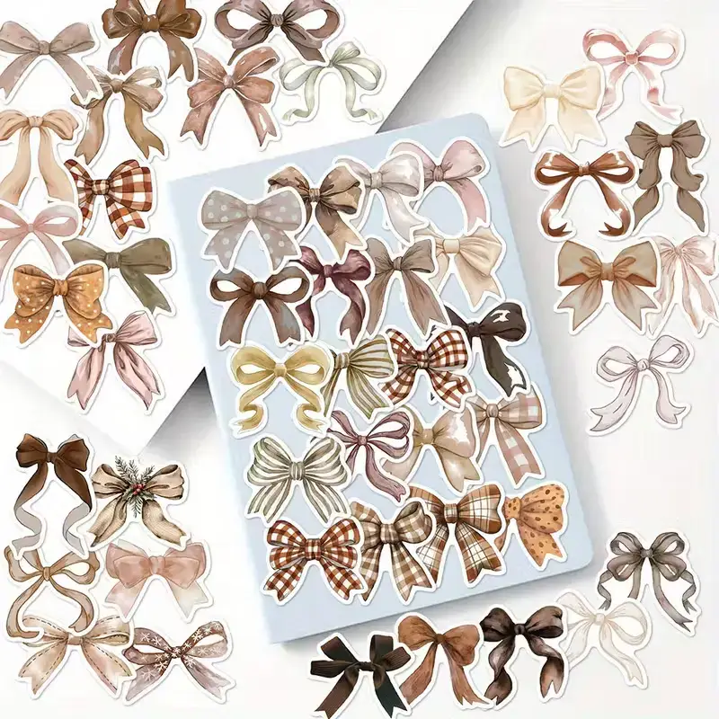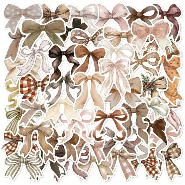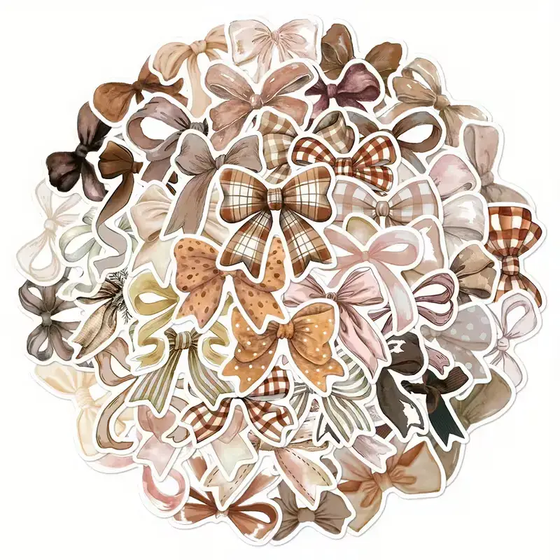 Elke set bevat 10 zorgvuldig ontworpen stickers met verschillende strikken in natuurlijke tinten zoals beige, bruin, crรจme en zachtroze. De stickers hebben een realistische en stijlvolle uitstraling, waardoor ze perfect zijn voor allerlei creatieve toepassingen.