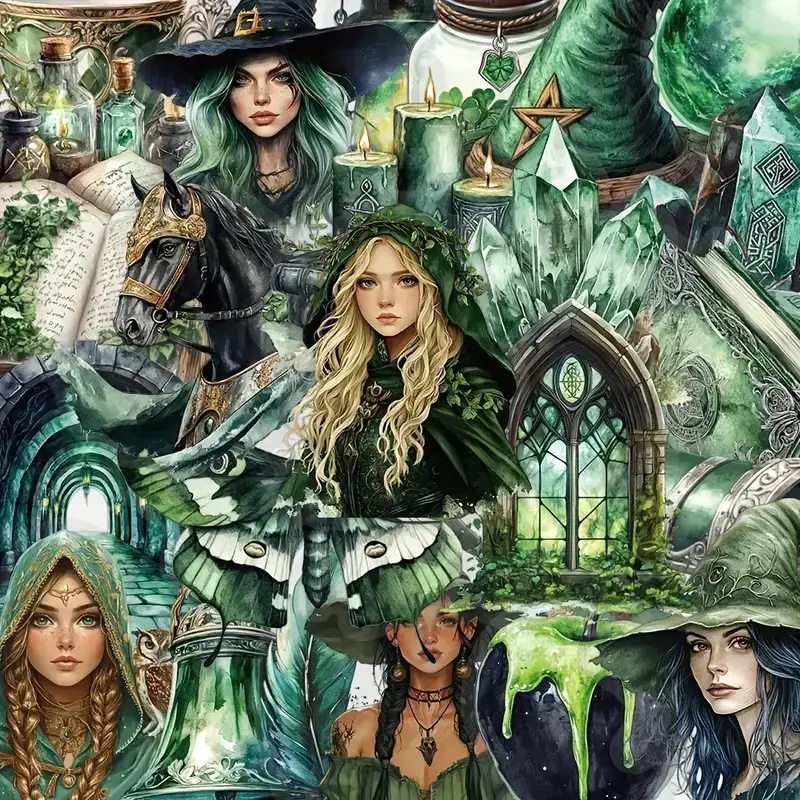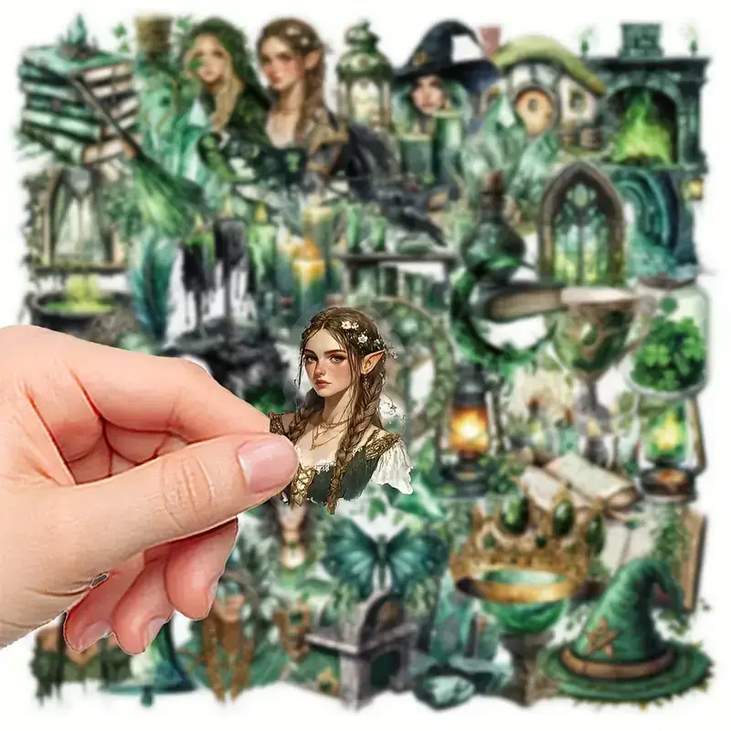 Stap binnen in een wereld vol mysterie, natuurmagie en elfenenergie met deze set van 10 transparante stickers in het thema Magisch Groen. De stickers zijn rijk geรฏllustreerd met groene kristallen, heksenhoeden, elfen, toverboeken, raven, drankjes en meer โ perfect voor fantasyfans, heksenjournals of iedereen die houdt van magische vibes.