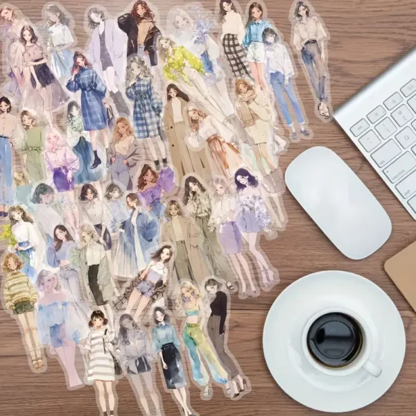 Breng je creaties tot leven met deze prachtige set van 10 transparante stickers met modebewuste meiden!