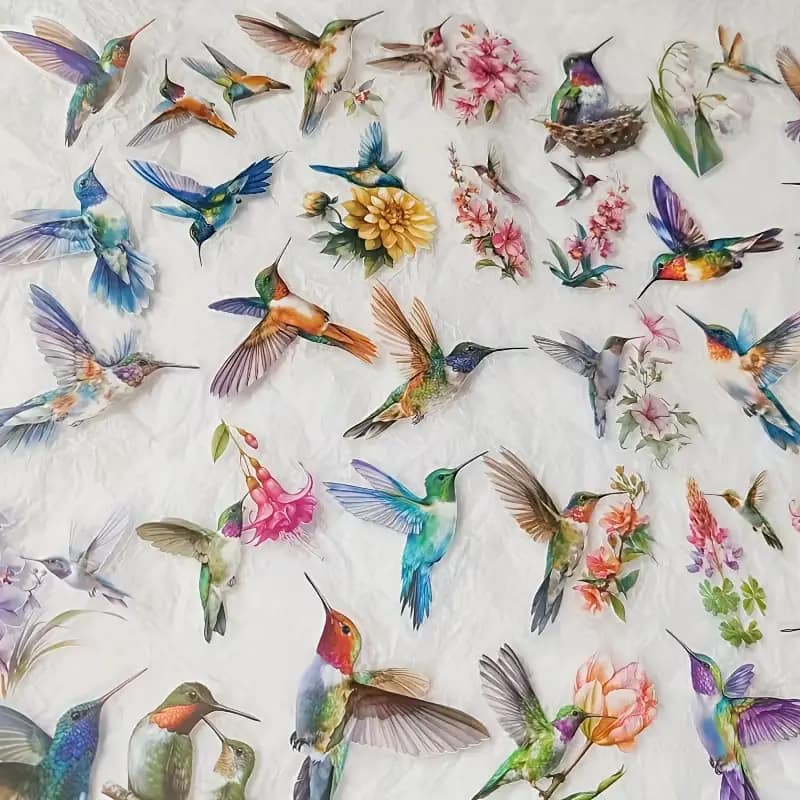 Breng de natuur tot leven in jouw creatieve projecten met deze schitterende transparante stickers van vogels en bloemen. De stickers zijn zorgvuldig ontworpen met oog voor detail: kleurrijke kolibries, sierlijke bloemen en elegante composities die jouw werk een romantische en artistieke touch geven.