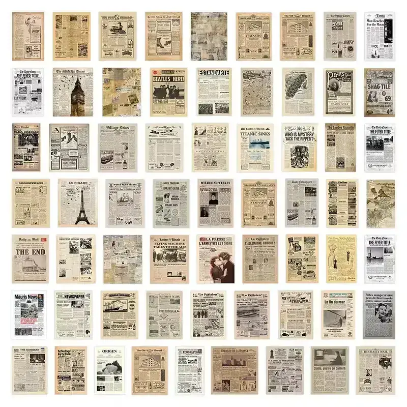 Elke sticker is geรฏnspireerd op echte krantenpaginaโs en voorzien van gedetailleerde prints, variรซrend van oude advertenties tot historische headlines. Dankzij de authentieke uitstraling zijn ze ideaal voor: