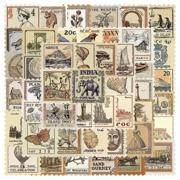 Breng een vleugje nostalgie in je creaties met dit unieke stickervel vol prachtige vintage postzegelillustraties. Van klassieke gebouwen en exotische dieren tot landschappen, botanische prints en oude reisstempels โ elke sticker is als een miniatuurkunstwerk.